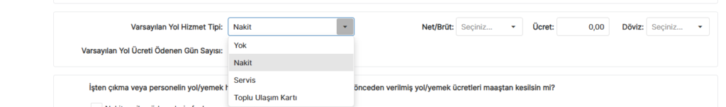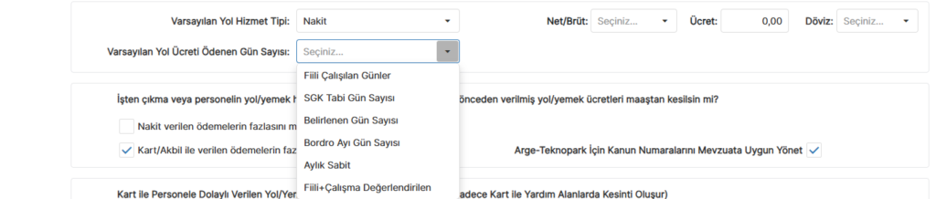 - Yol yardımı ödeme gün sayısı seçilir.